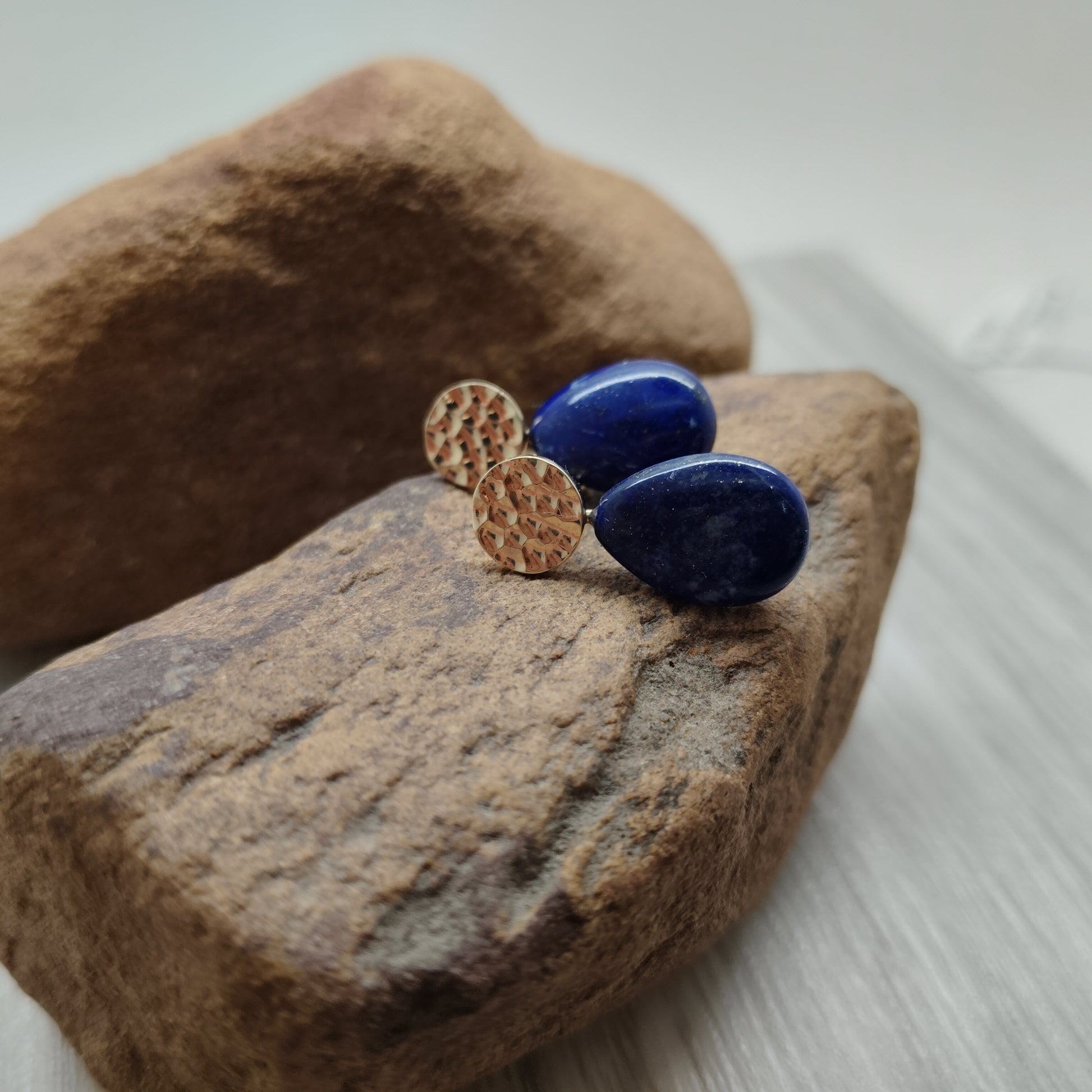 Polished Lapis Gemstone Drops for Gold Stud Earrings